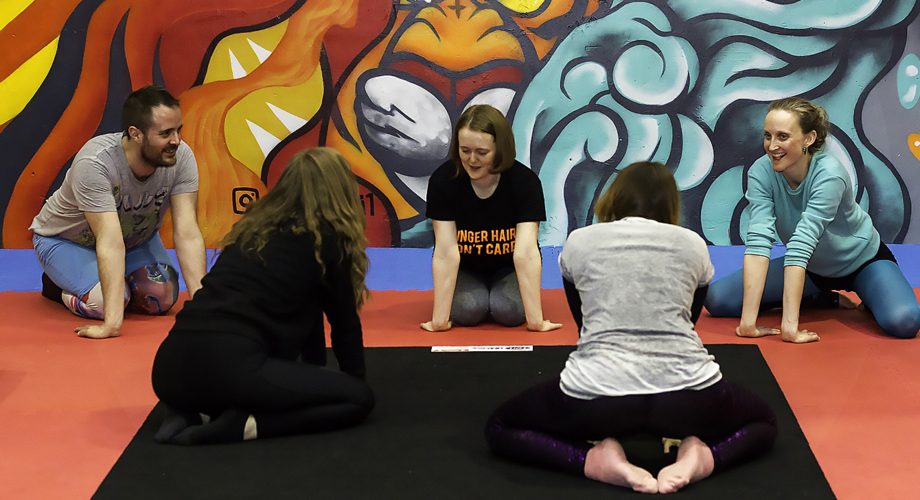 Outdoor footwear is not permitted in the training space, and most activities are barefoot. However, a clean pair of indoor trainers/dance shoes may be worn inside for some activities.